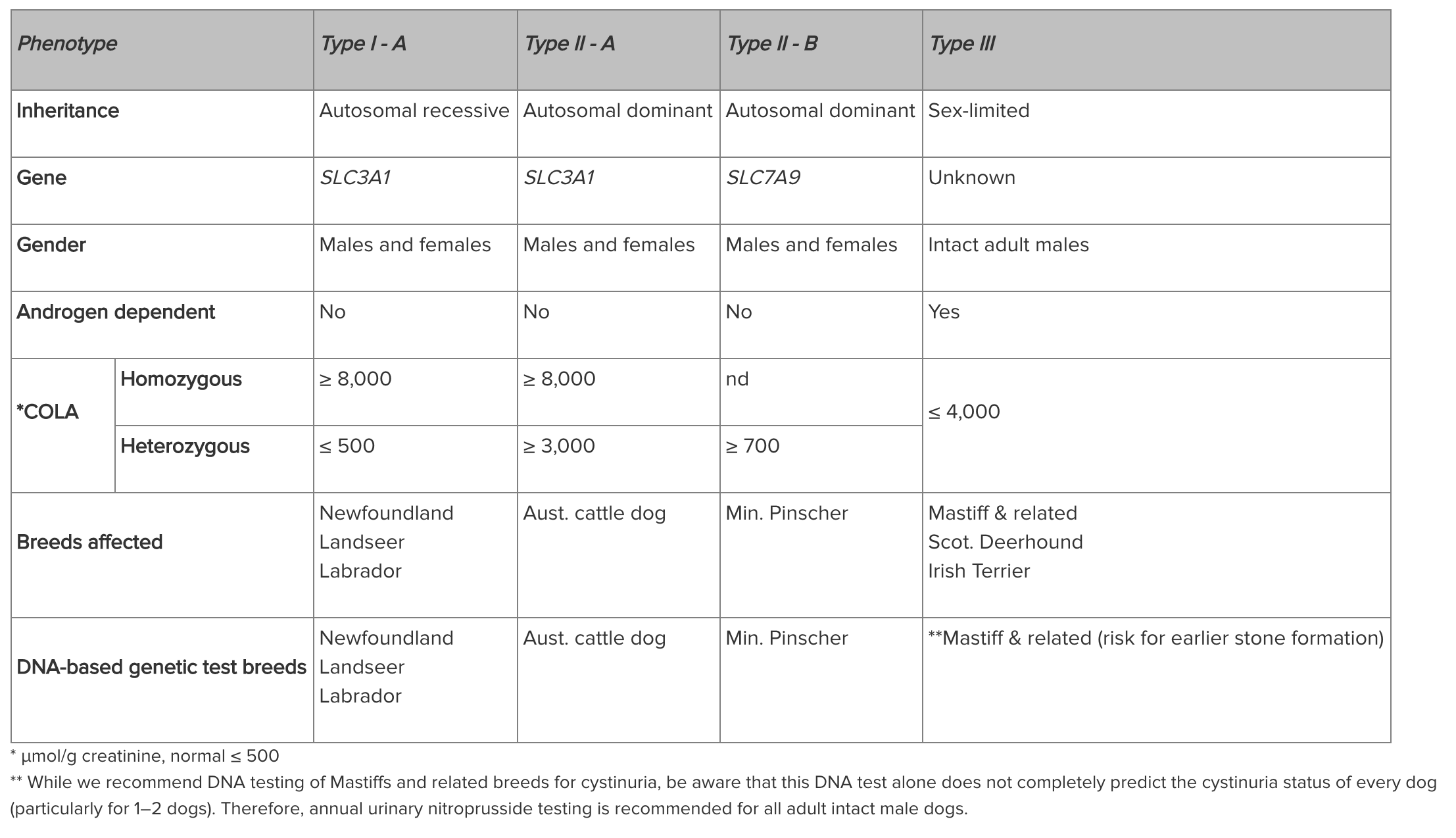 Etusivu » Onko mastiffien kystinuria samanlainen kuin irskien? » cystinuria types